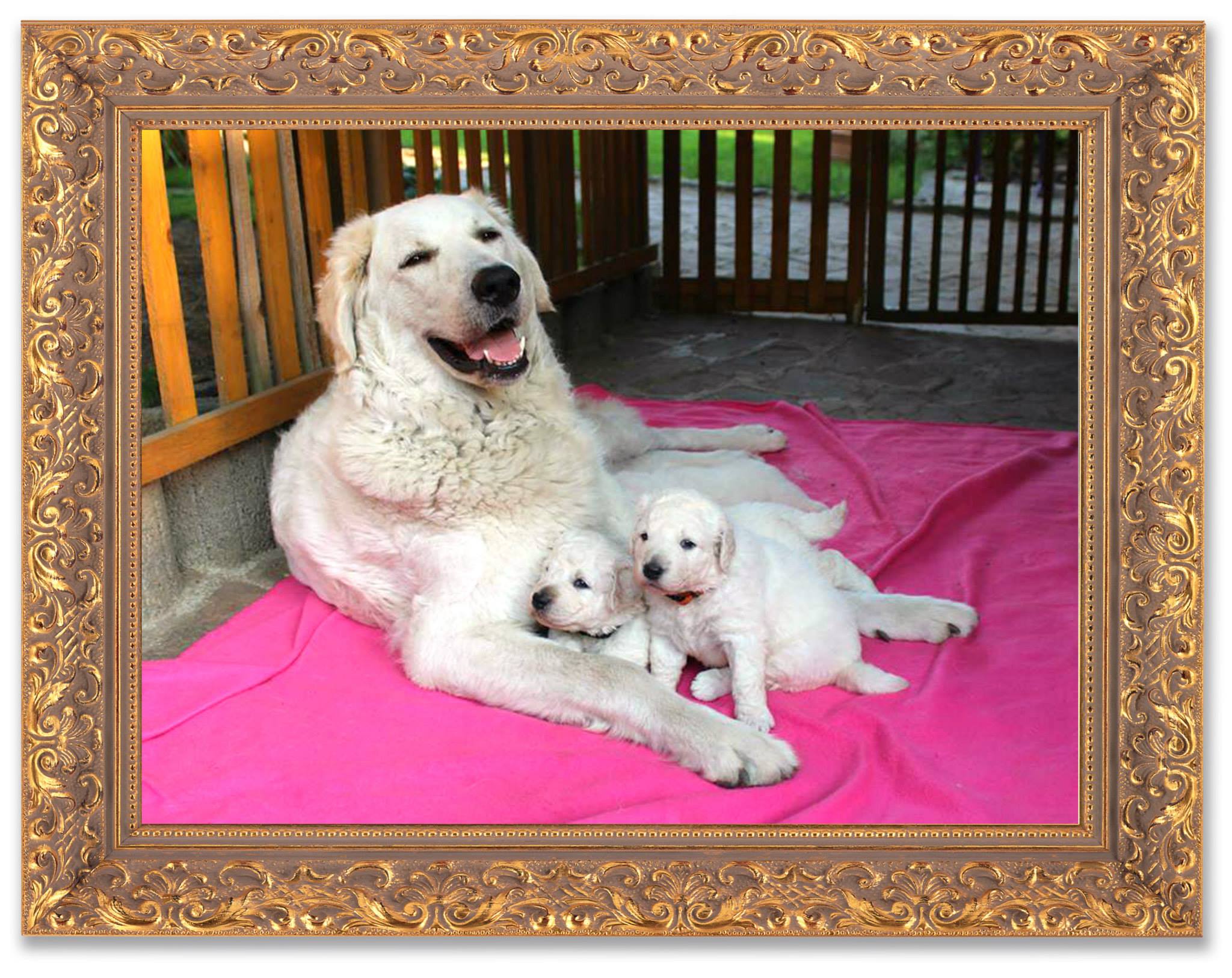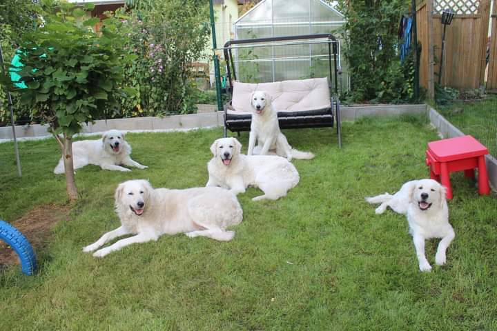 Bereits in meiner Kindheit, habe ich mich bei unseren Urlaubsreisen in die Ungarische Puszta, in die Ungarischen Hirtenhunde verliebt. Ich habe ihren Stolz und ihre Persönlichkeit bewundert und mich in Ihre Schönheit verliebt. So einen Hund an meiner Seite zu haben war nur ein Traum. Als dann 2006 Domingo zu uns kam, war es immer noch wie ein Traum. Er war genauso wie ich ihn mir vorgestellt habe, imposant und mit der eigenen Persöhnlichkeit der Ungarischen Kuvasz. Ein Jahr später lernte er dann Anna und Chanel zu weißen Pfote kennen und er hat sich sofort verliebt. Im Sommer 2009 wurden Domingo und Chanel stolze Eltern von 9 Kuvaszwelpen und im Frühling 2009 kam Xhevahire zu unserem Rudel. Domingo hat sie mit viel Geduld und Liebe aufgezogen. Sie ist unser Sonnenschein. Im Dezember 2011 verliebten wir uns in das Lila-Mädchen aus der Zucht Majna-menti Mákvirág. Wir tauften sie Arika. Am 16. April 2014 heirateten Armani Niclas vom Crystal Diamonds und Arika und im Juni wurden ein Bub und zwei Mädchen geboren. Eines der Mädchen, Devina-Chanel, hat unser Herz erobert und ist bei uns geblieben. Sie ist nun schon 9 Jahre alt und topfit wie ein jungens Mädchen. Im Frühling 2016 haben Armani Niclas vom Crystal Diamonds und Xhevahire vom Quecksilber wieder geheiratet. Das Ergebnis waren süsse, weisse Fellknäulchen. Sommer 2017: Fajo der kleine Prinz wird geboren und ist im Herbst 2017 zu seiner neuen Familie umgezogen. Devina-Chanel vom Crystal Diamonds und unser Rüde Borza-Parti Örseg Arad sind am 05.07.2018 stolze Eltern von 5 Hündinnen und 5 Rüden geworden. Alle Babys haben wundervolle Familien und einige anspruchvolle Jobs bekommen. Zu Nikolaus 2018 sind drei Kuvaszbabys geboren worden. Ein Rüde und zwei Mädchen. Die stolzen Eltern sind Majna-menti Mákvirág Arika und Borza-Parti Örseg Arad. Sie haben ihre Familien und ihre Bestimmung gefunden. Am 16.02.2019 wurde Majna-menti Mákvirág Dária geboren. Und es war von Anfang an klar, sie wird in Zukunft in unserem Rudel leben. Seit Ostern 2019 ist sie nun bei uns und es war eine wirklich gute Entscheidung. Sie wurde so liebevoll von allen aufgenommen.
