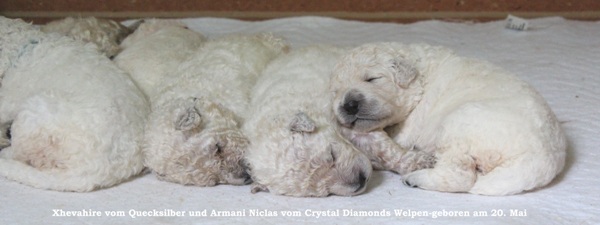 Neujahrsmorgen 2024: Katalin Dária vom Crystal Diamonds und Elias Csillag vom Crystal Diamonds haben die Silvesterknallerei hinter sich gelassen und geben sich der Liebe hin. Beide waren voller Ruhe und Gelassenheit. Am 03. März kamen 5 Rüden und 6 Hündinnen zur Welt.