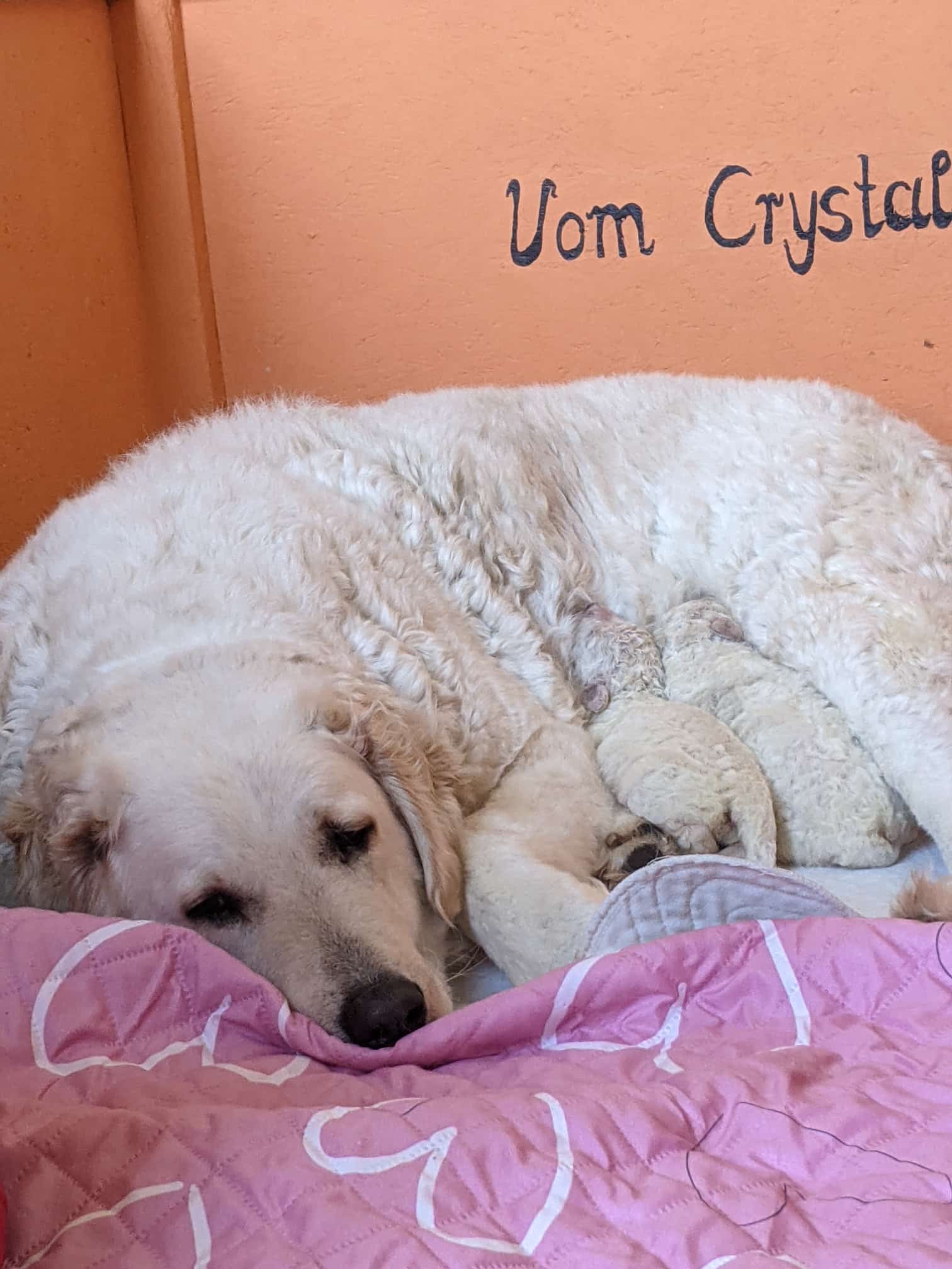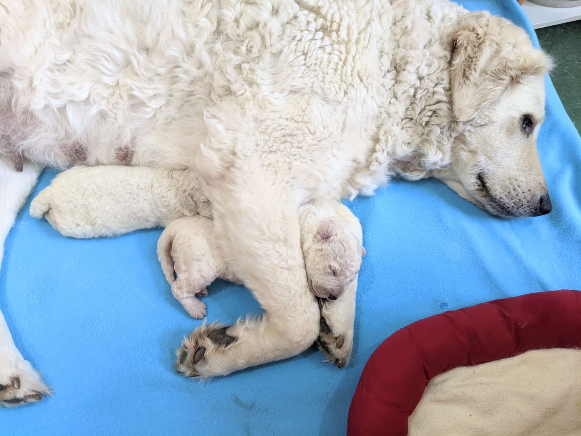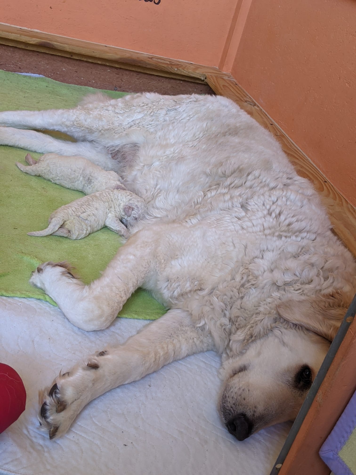 4 Tage sind die beiden Racker nun schon jung und sind sehr ruhig und gelassen. Sie haben aber auch alle 11 Zitzen von Mami Katalin ganz für sich allein. Katalin umsorgt sie so liebevoll..jpeg)