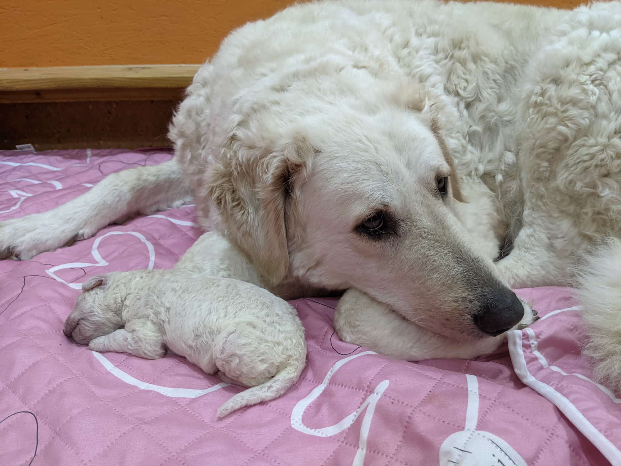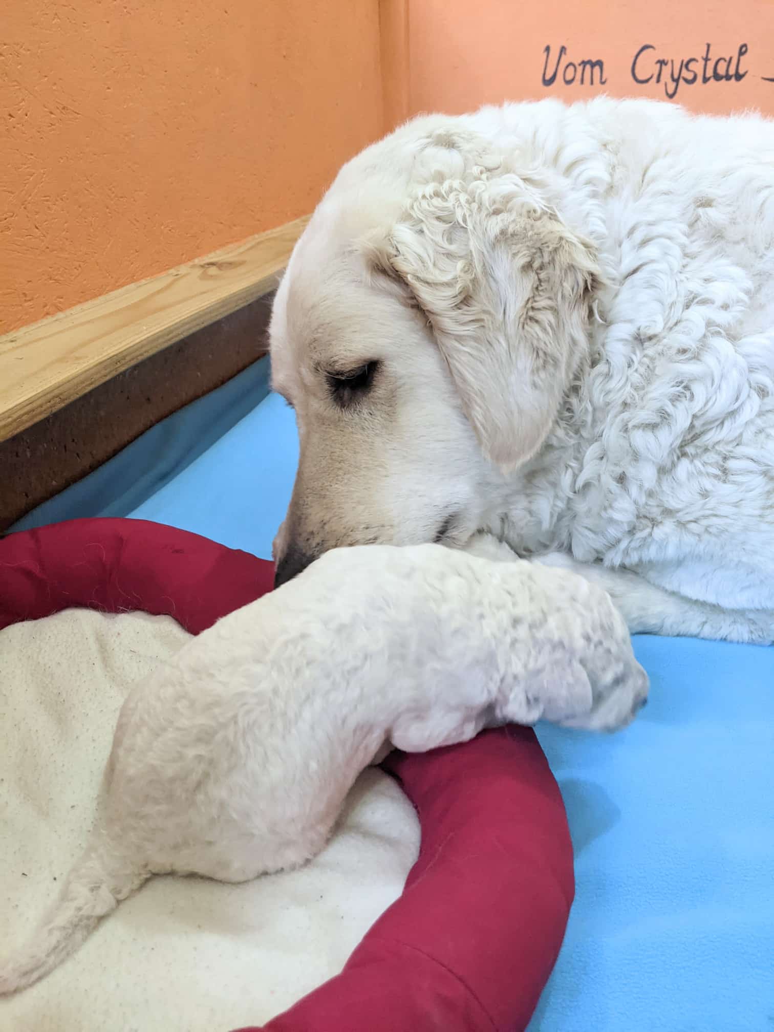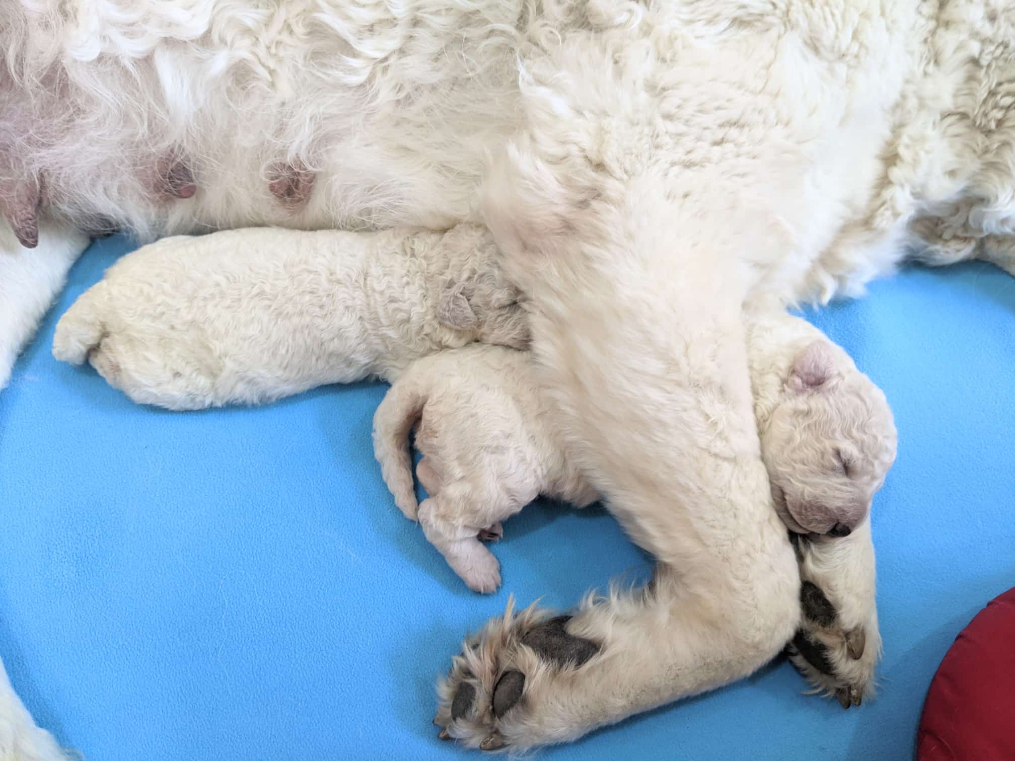 4 Tage sind die beiden Racker nun schon jung und sind sehr ruhig und gelassen. Sie haben aber auch alle 11 Zitzen von Mami Katalin ganz für sich allein. Katalin umsorgt sie so liebevoll..jpeg)